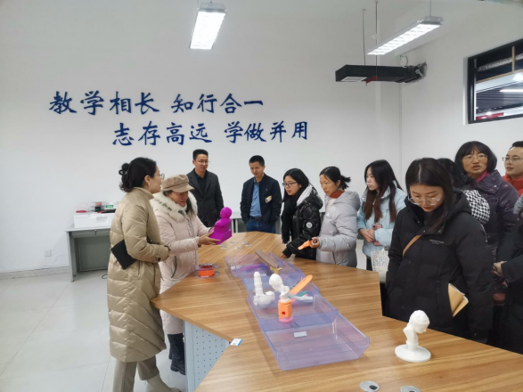 王雪莲副校长一行先后参观了智能制造与汽车工程学院的精密制造中心、汽车综合实训中心、机器视觉综合实训室、工业机器人系统集成实训室、3D打印室等实践教学场地,详细了解相关设备配置与教学开展情况。参观过程中,实验学校教师亲身体验了模拟驾驶、VR视觉系统等实训项目,对我校先进的实训条件与实践育人模式给予高度评价。
